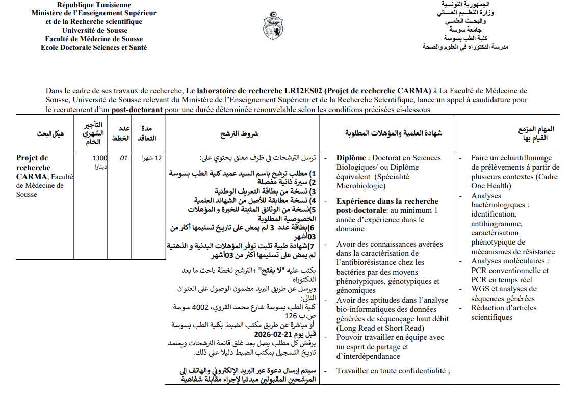La Faculté de Médecine de Sousse a été créée en 1974 par la loi n° 74-83 du 11 Décembre 1974 ratifiant le décret-loi n° 74-7 du 25 Août 1974.